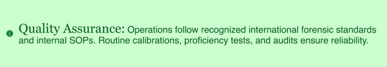 Our sections are managed by trained forensic scientists and operate under strict quality assurance protocols.